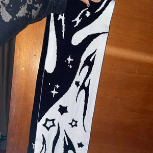 Turn up your streetwear game with this Y2K Flame Star Knitted Scarf, blending bold contrast and edgy design for a standout winter look.