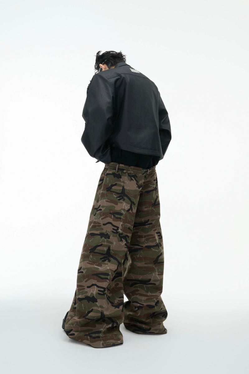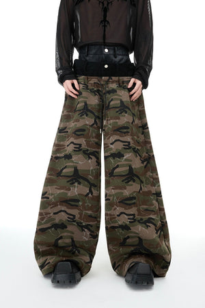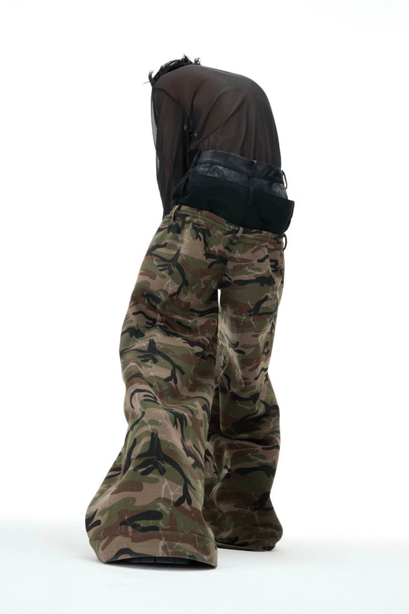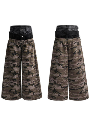 Camo Triple-Waist Wide-Leg Pants