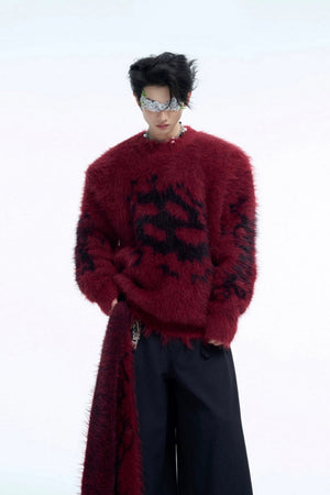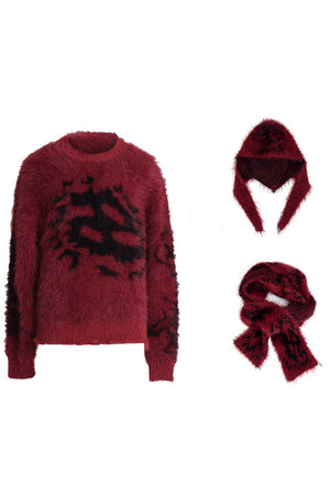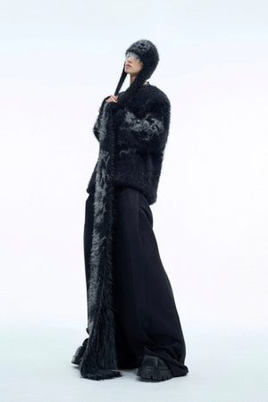 Colorblock Mohair Knit Hoodie Sweater