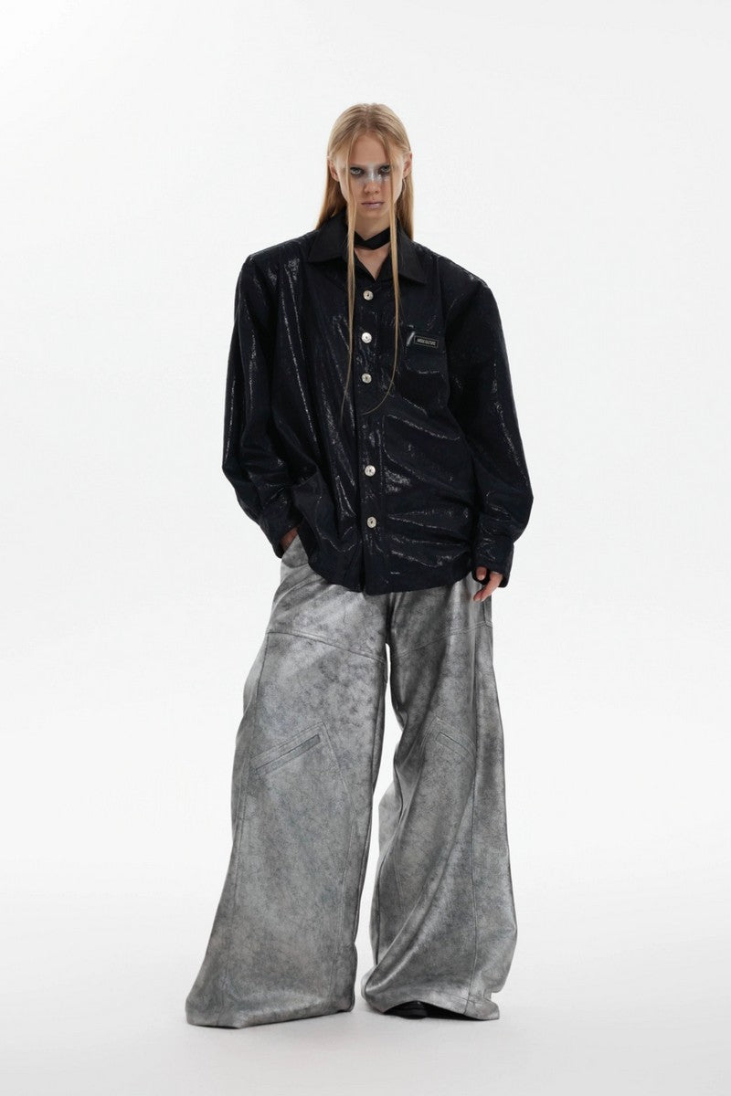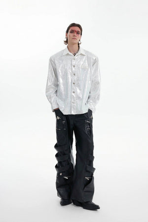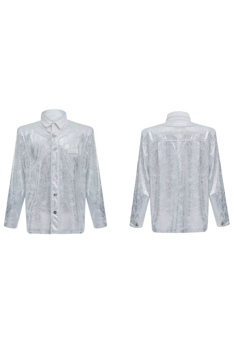 Liquid Texture Shine Layered Shoulder Shirt