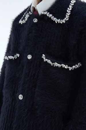 Luxury Rhinestone Faux Fur Cardigan