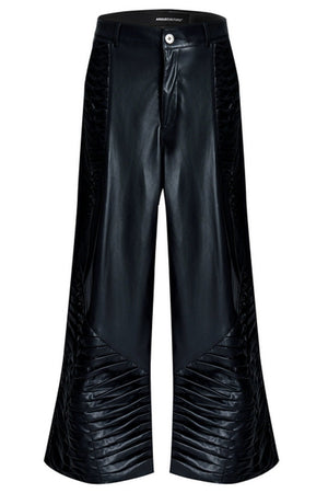 Matte PU Leather Crinkle Straight Pants