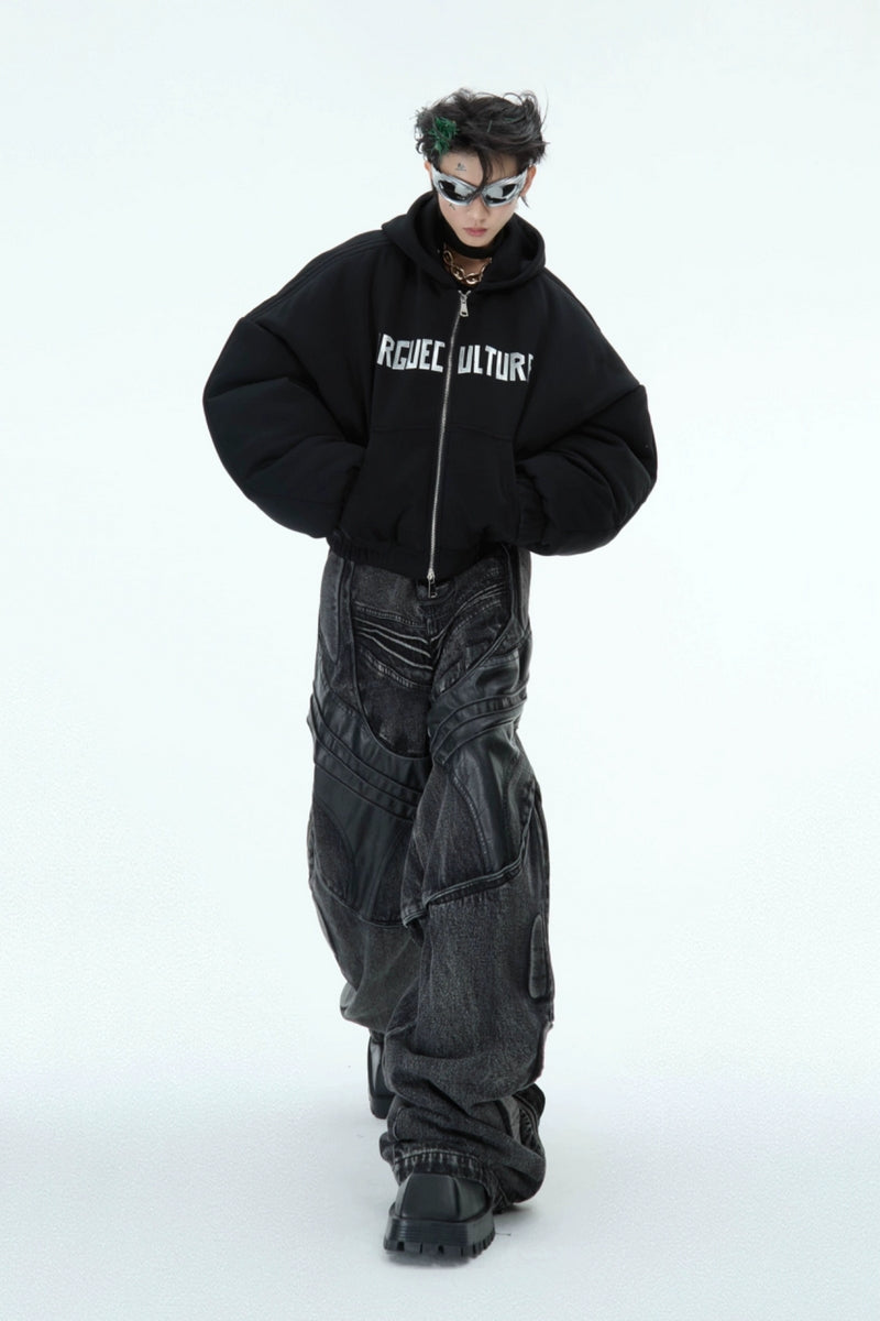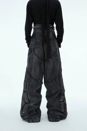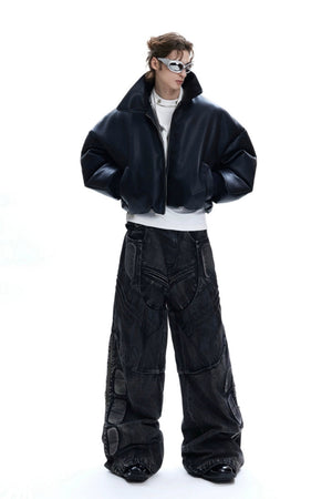 Washed Black PU Patchwork Jeans
