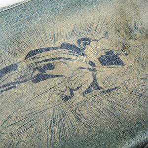 Abstract Printed Denim Shorts