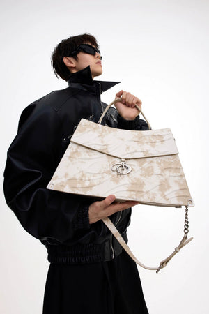Embossed Metal Buckle Vintage Tote Bag