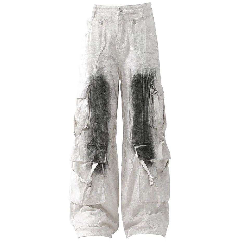Stand out from the crowd with our 'spray-paint' graphic cargo pants. Featuring a baggy fit and multiple utility pockets for a bold techwear and Y2K look.