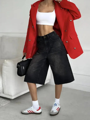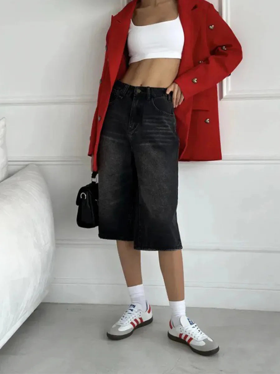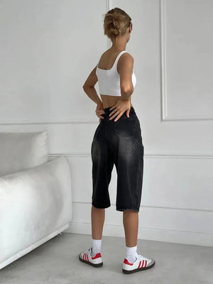 Streetwear Low Waist Wide Leg Denim Jorts