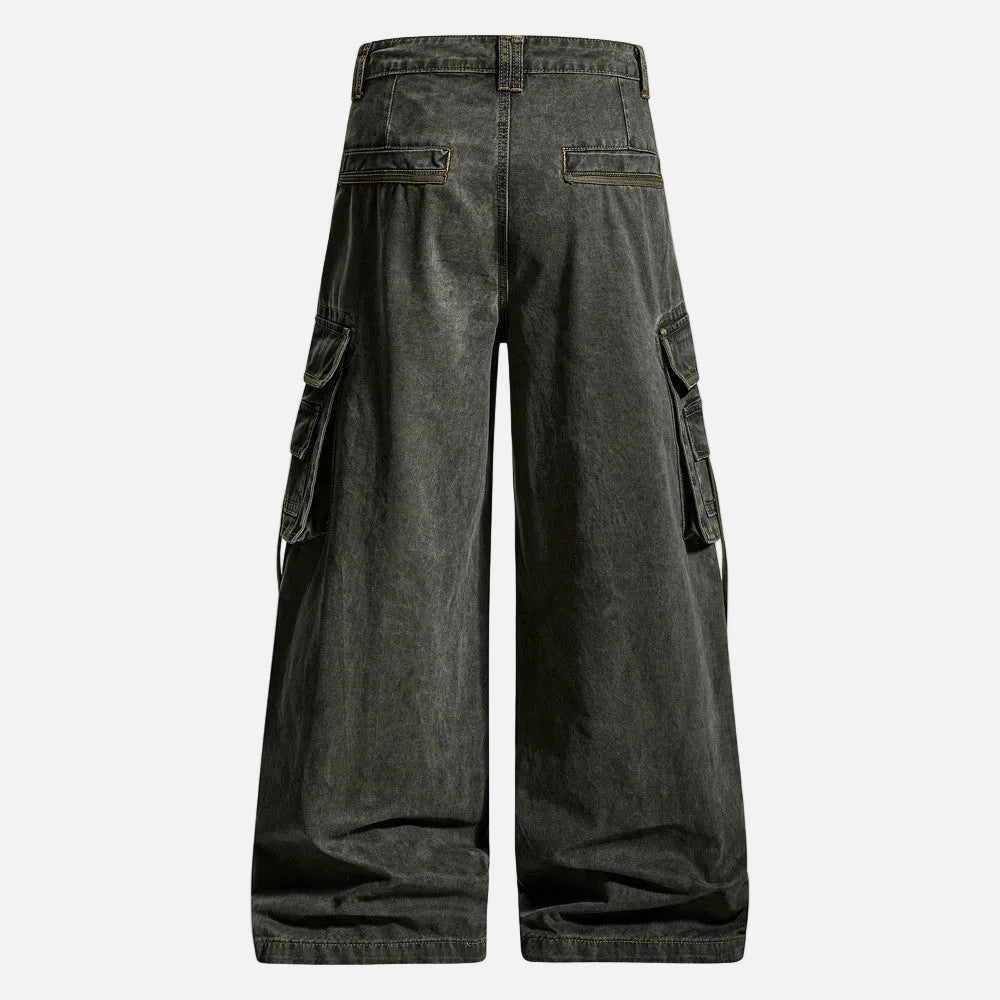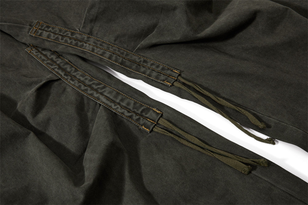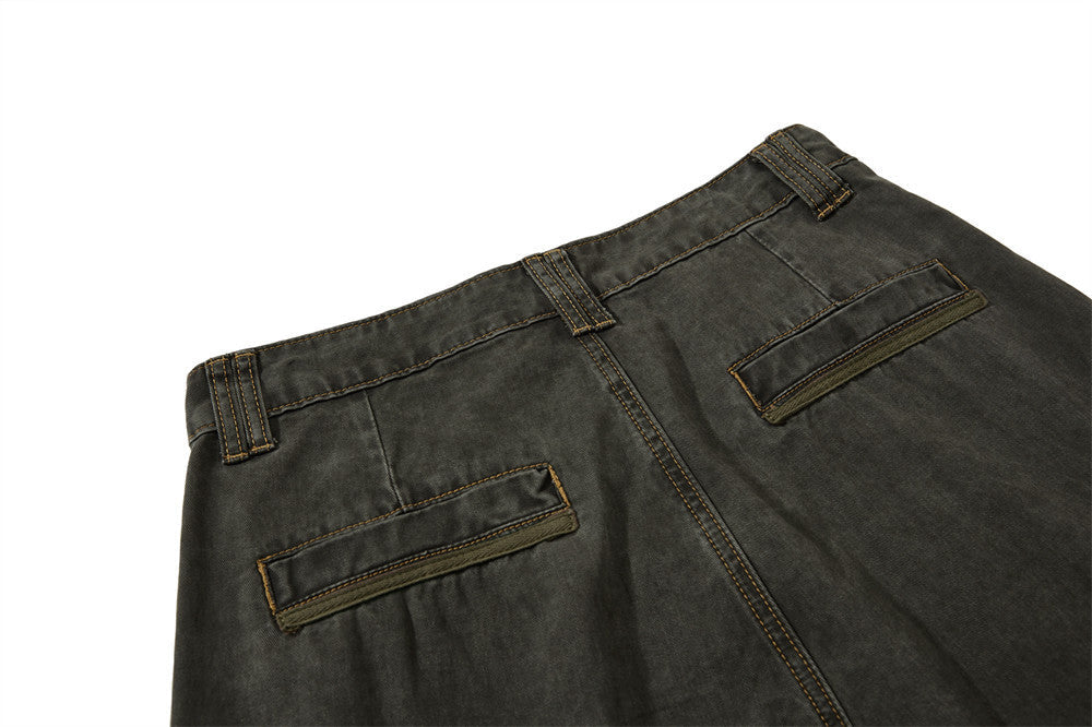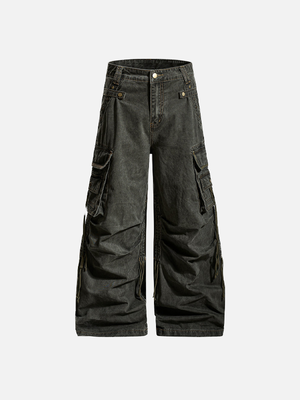 Streetwear Pleated Design Wide Leg Denim Jeans