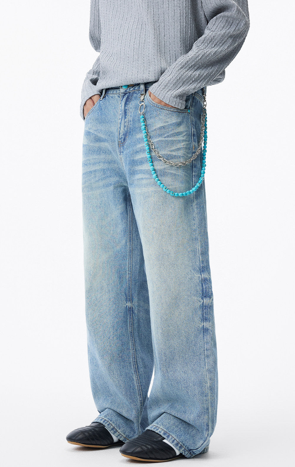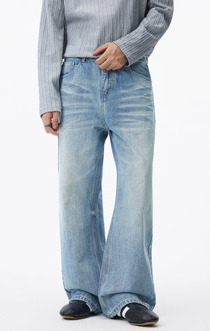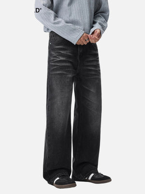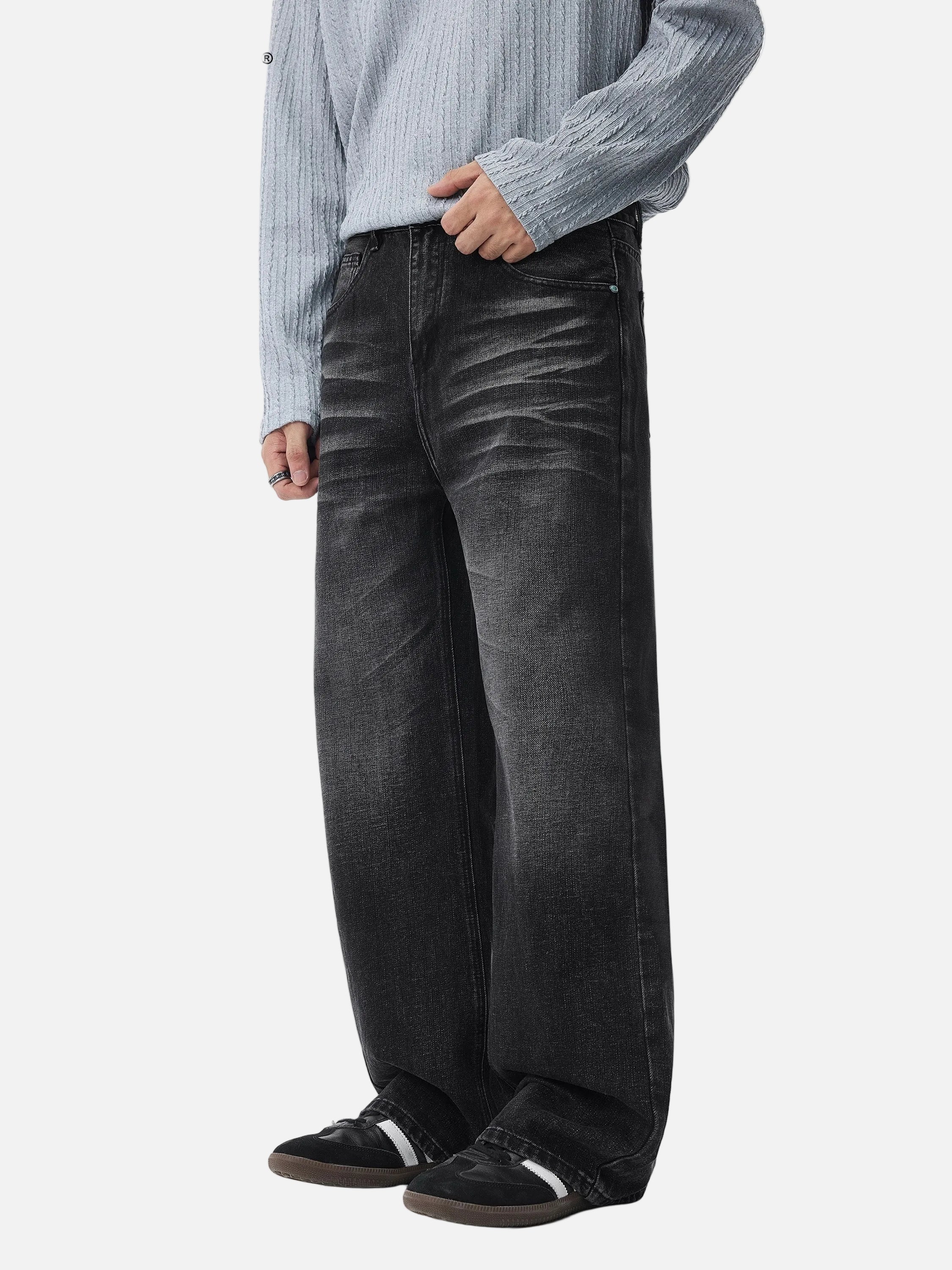 Streetwear Washed Cat Whisker Loose Denim Jeans