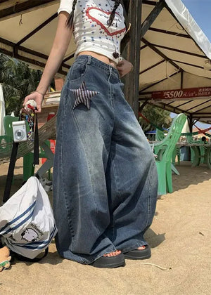 Y2K Gothic Grunge Star Oversized Denim Jeans