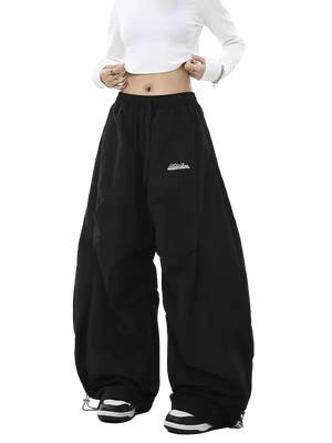 Y2K-inspired wide-leg cargo sweatpants featuring roomy pockets, a relaxed fit, and soft fabric for a trendy, comfortable streetwear look.