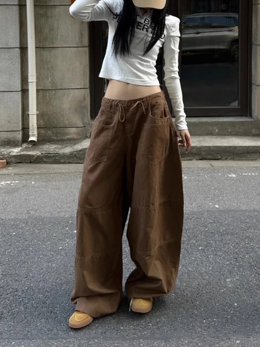 Y2K Oversized Brown Boyfriend Cargo Pants