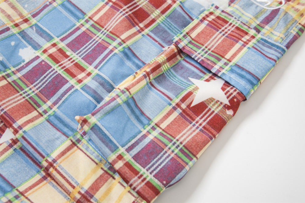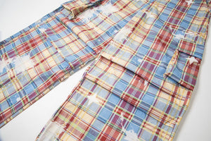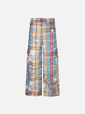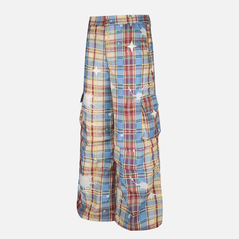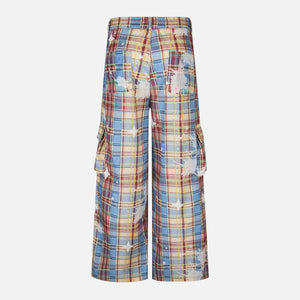 Y2K Trendy Vibe Design Painted Plaid Wide-Leg Cargo Pants
