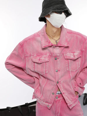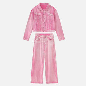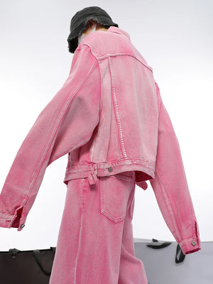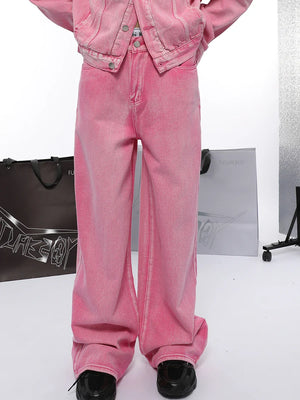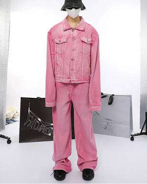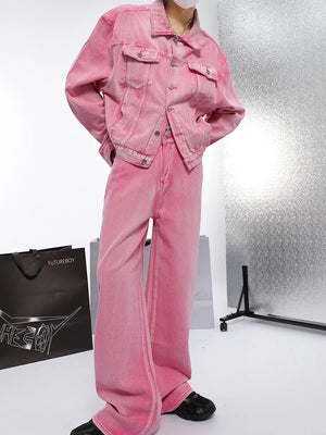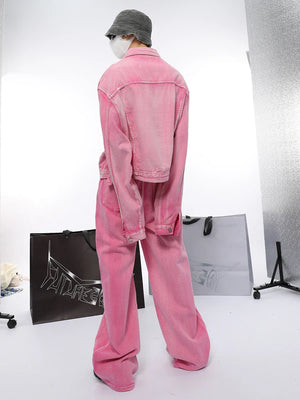 Pink Chic Oversized Denim Jacket And Baggy Jeans