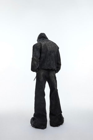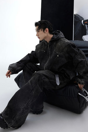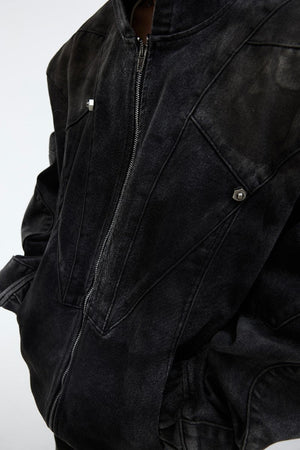 Shoulder Pads Distressed Denim Jacket