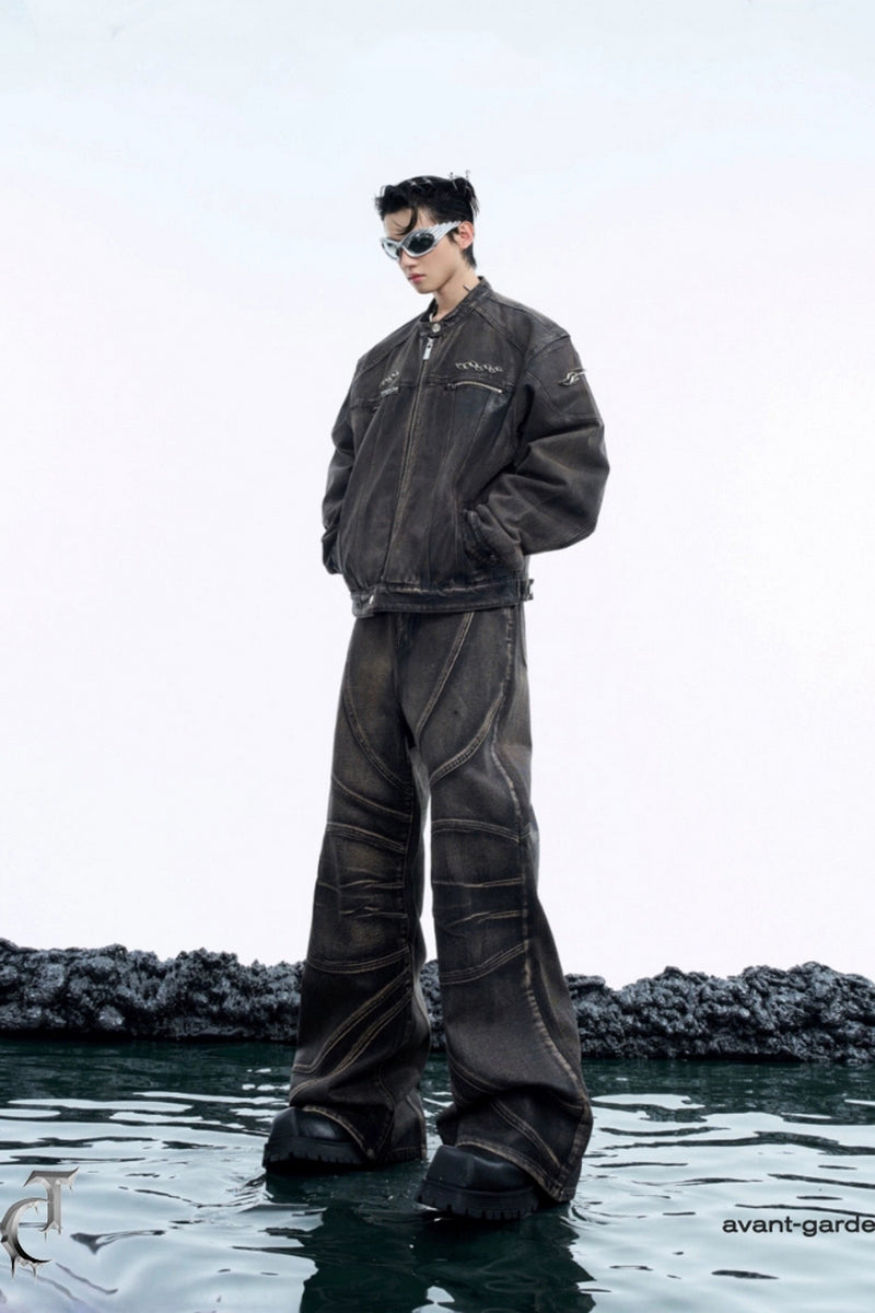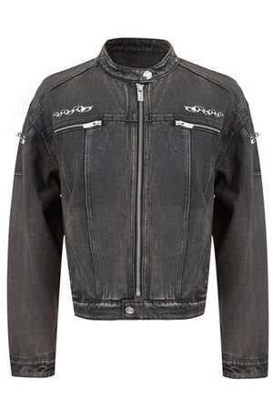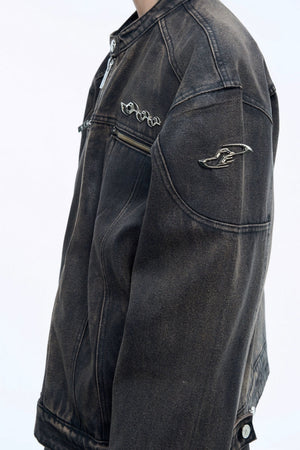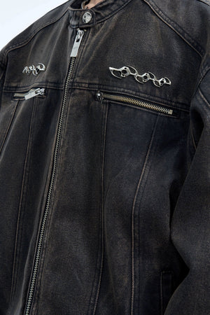 Vintage Waxed Denim Jacket with Metal Accents