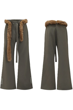 Flared Tailored Pants with Fur Belt