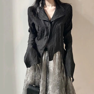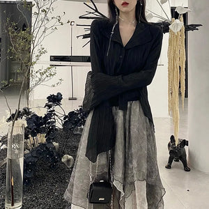 Edgy grunge gothic blouse featuring irregular flare sleeves for a dramatic and stylish dark aesthetic.