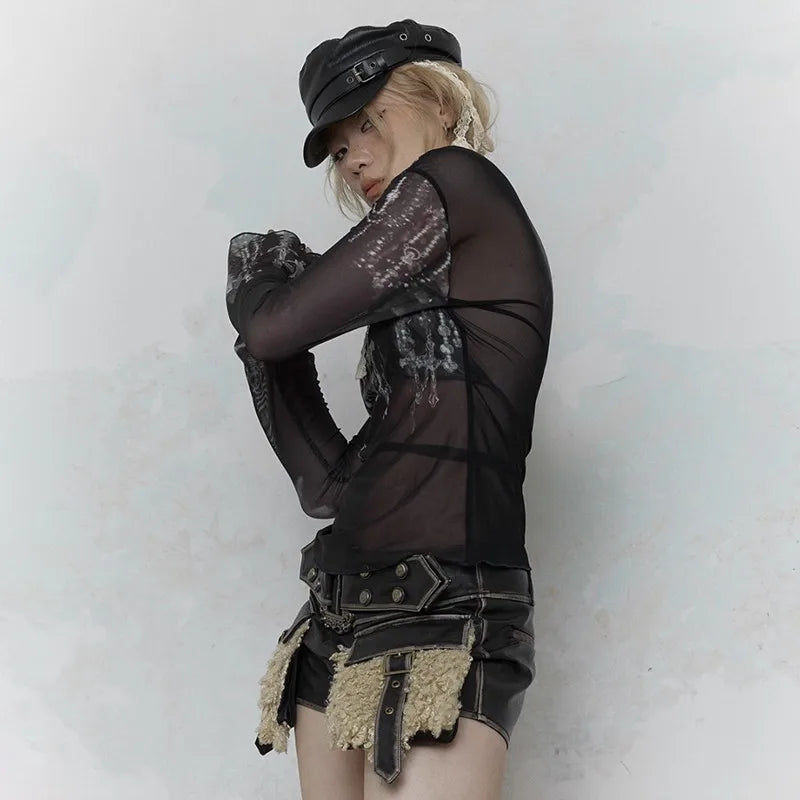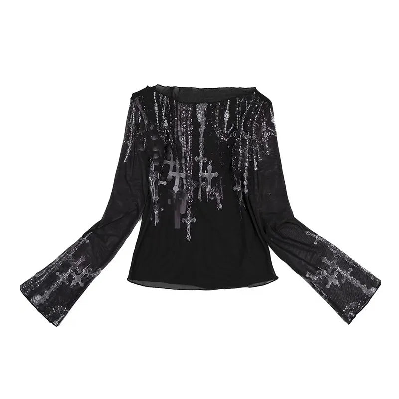 Grunge Y2K Gothic Mesh Off-Shoulder Women's Top