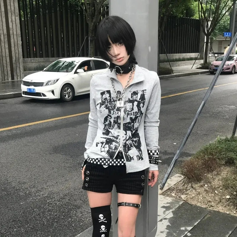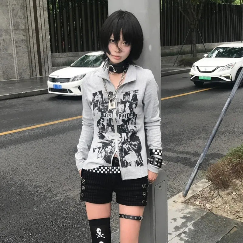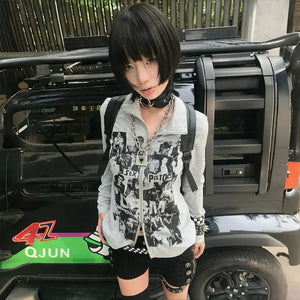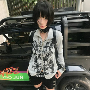 Grunge Y2K Graffiti Zipper Women's Top