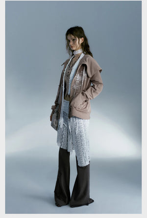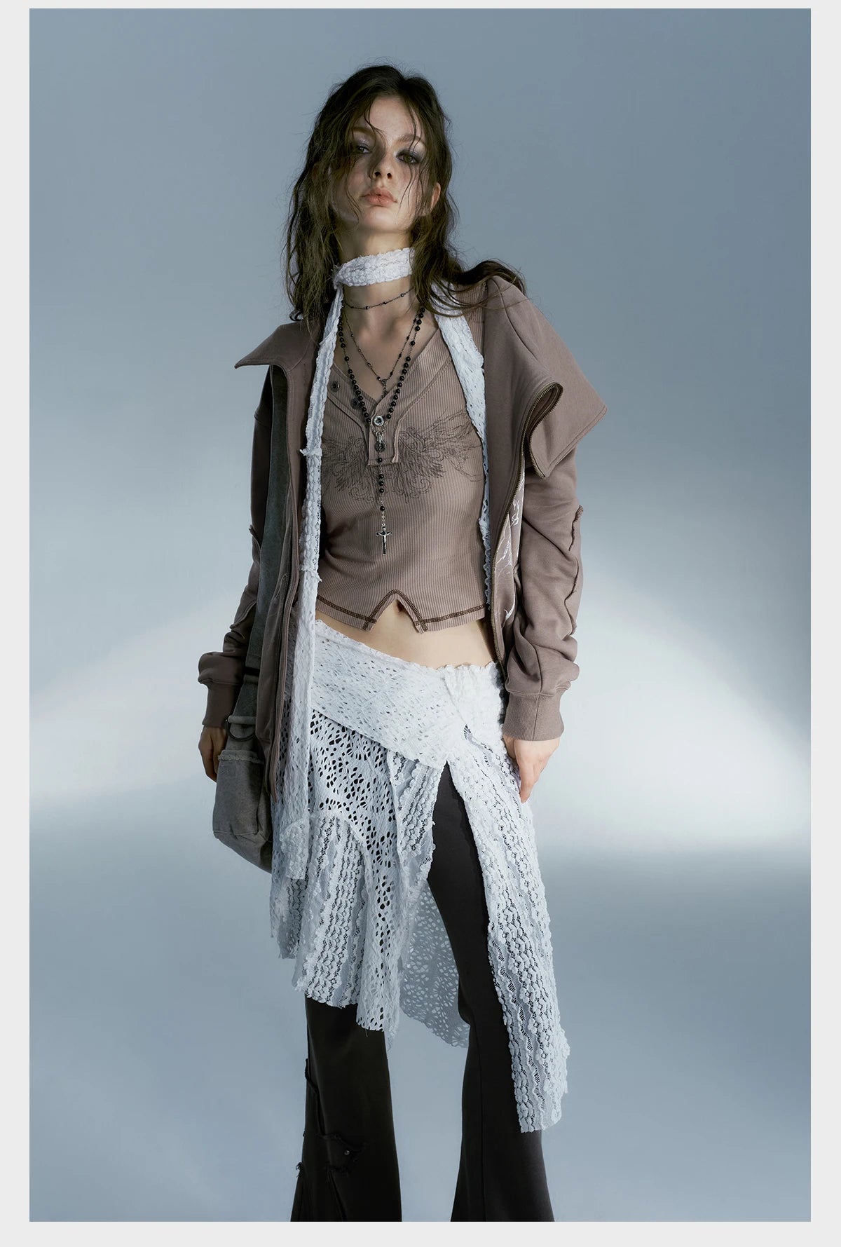 Stylish grunge Y2K-inspired skirt with lace detailing and an irregular hem for a dark, romantic vibe.