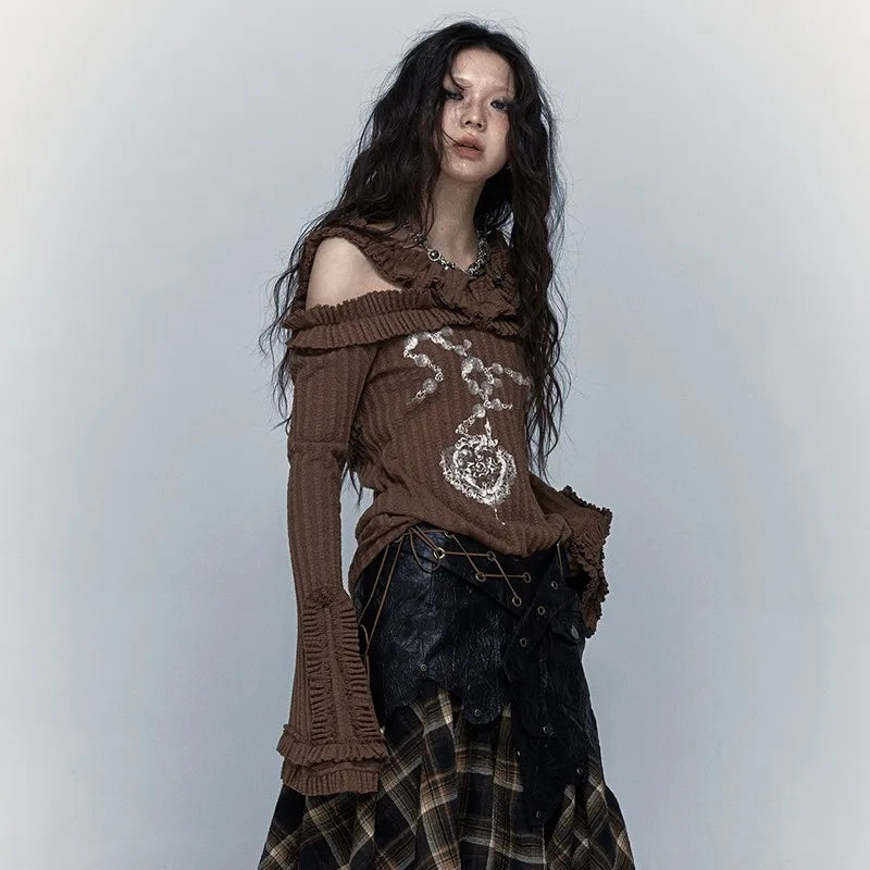 Grunge Y2K Off-Shoulder Knitted Women's Top