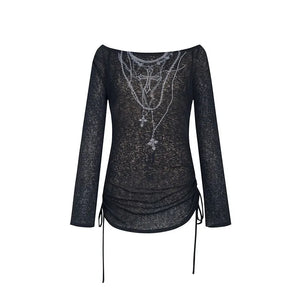 Grunge Y2K Tattoo Wasteland Print Knitted Women's Top