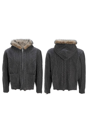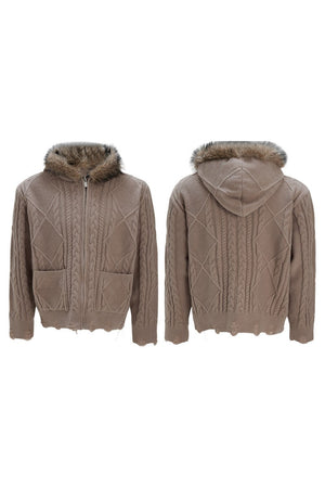 Faux Fur Knit Zip-Up Hoodie