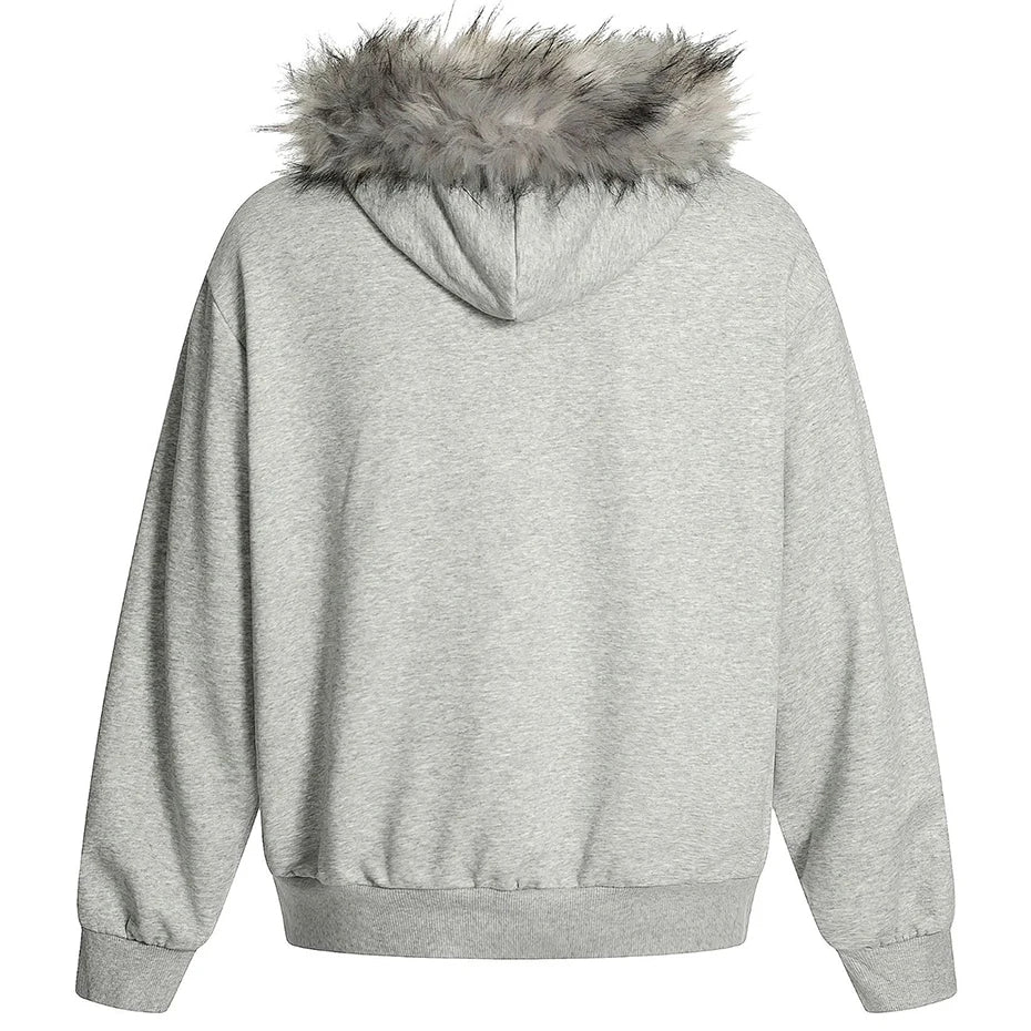 An oversized men’s hoodie featuring a cozy fur collar, soft fabric, and a relaxed fit for warm, stylish streetwear comfort.