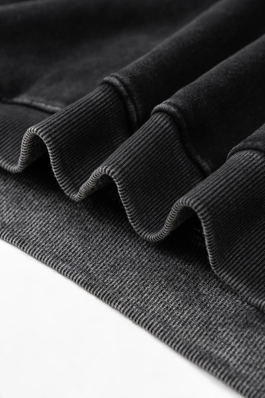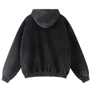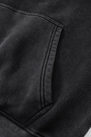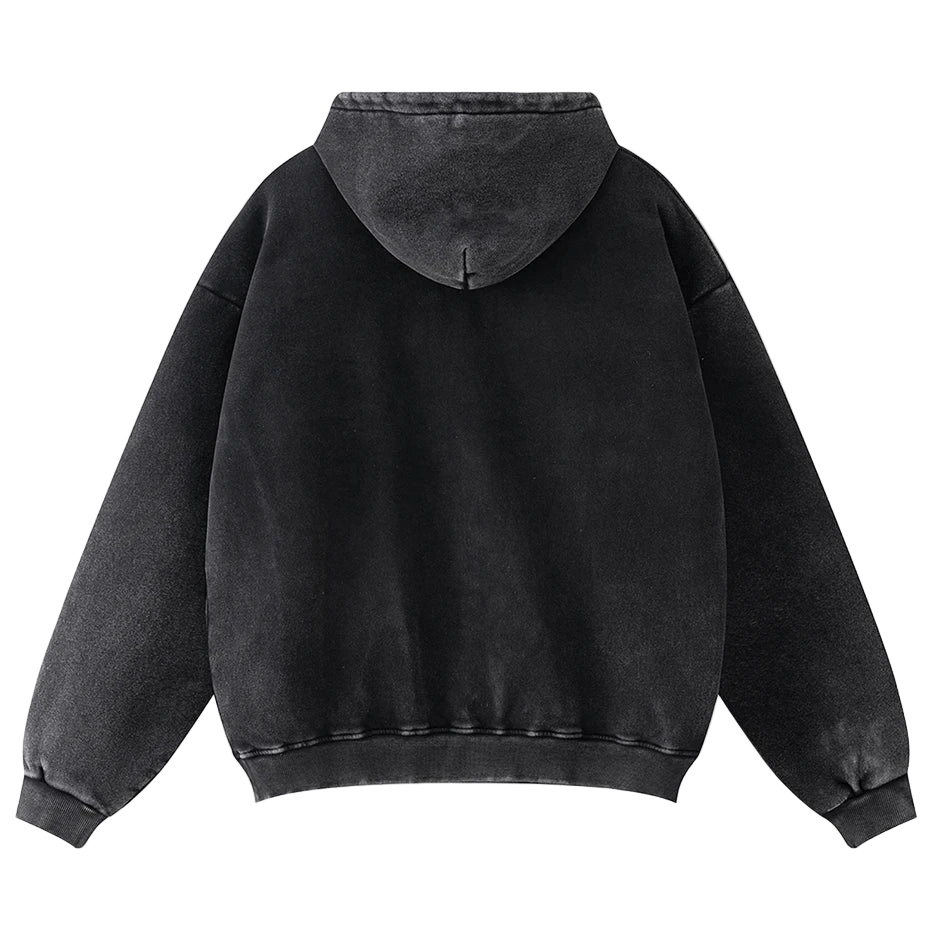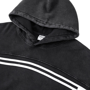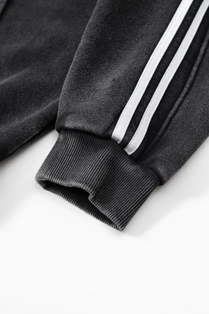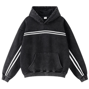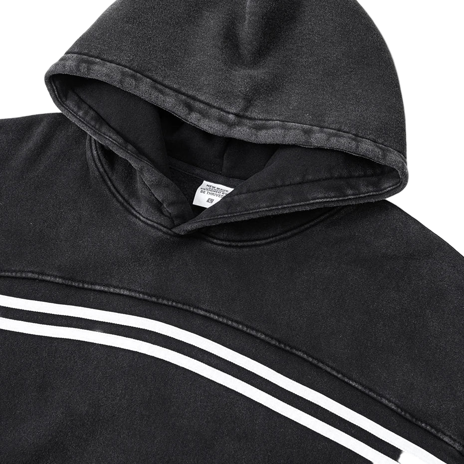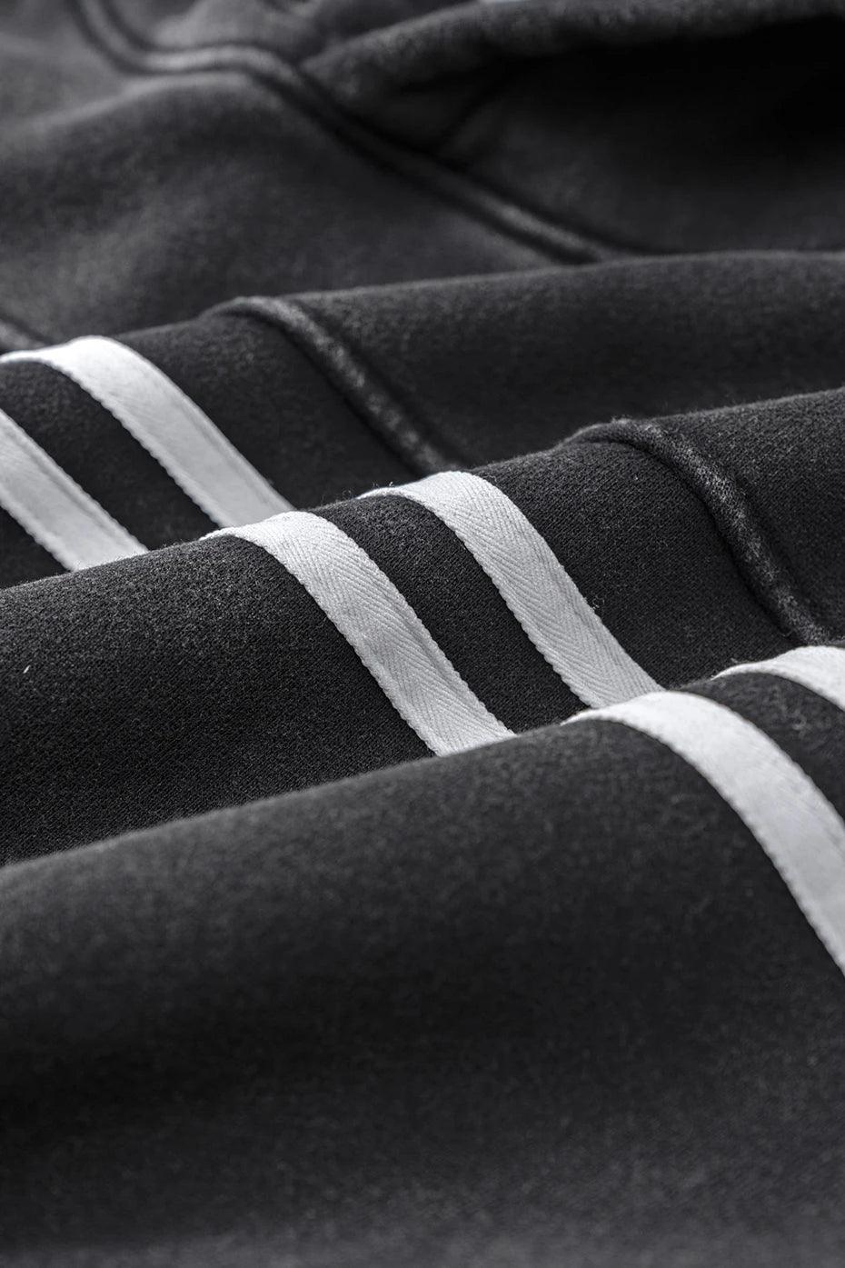 Vintage Stripe Washed Hoodie — a cozy black hoodie with retro white stripe detailing for a classic sporty streetwear look.