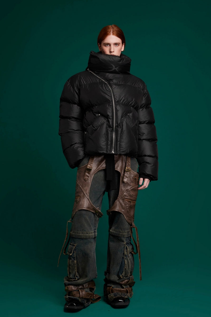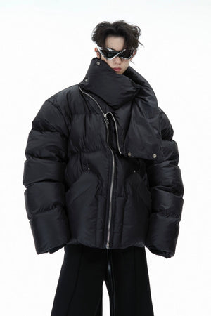 Asymmetrical Zipper High-Collar Puffer Jacket