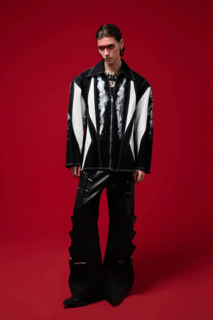 Deconstructed Contrast Dye Oversized Patchwork Jacket