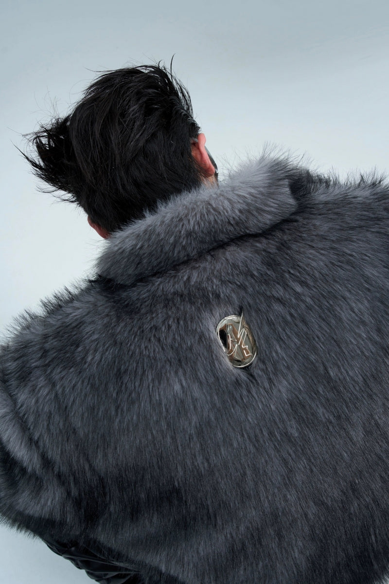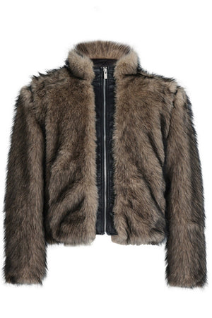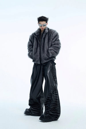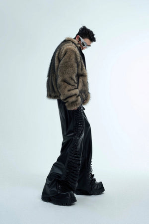 Faux Fur PU Leather Panel Jacket