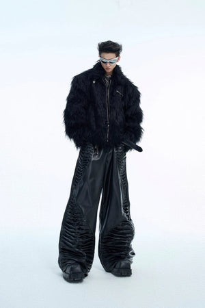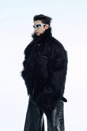 Metal Buckle Faux Fur Short Jacket