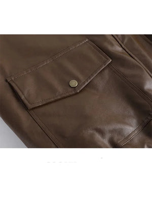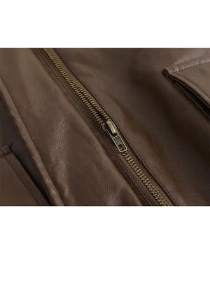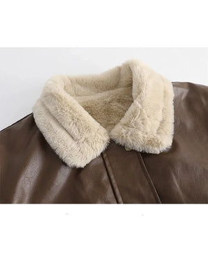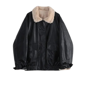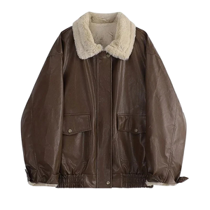 Embrace street style with a cozy twist in this oversized, vintage-inspired leather bomber jacket featuring a plush faux fur collar.