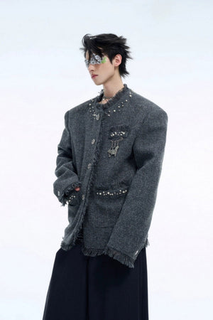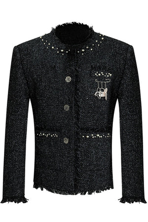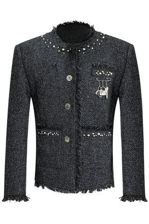 Pearl Accent Textured Tweed Jacket