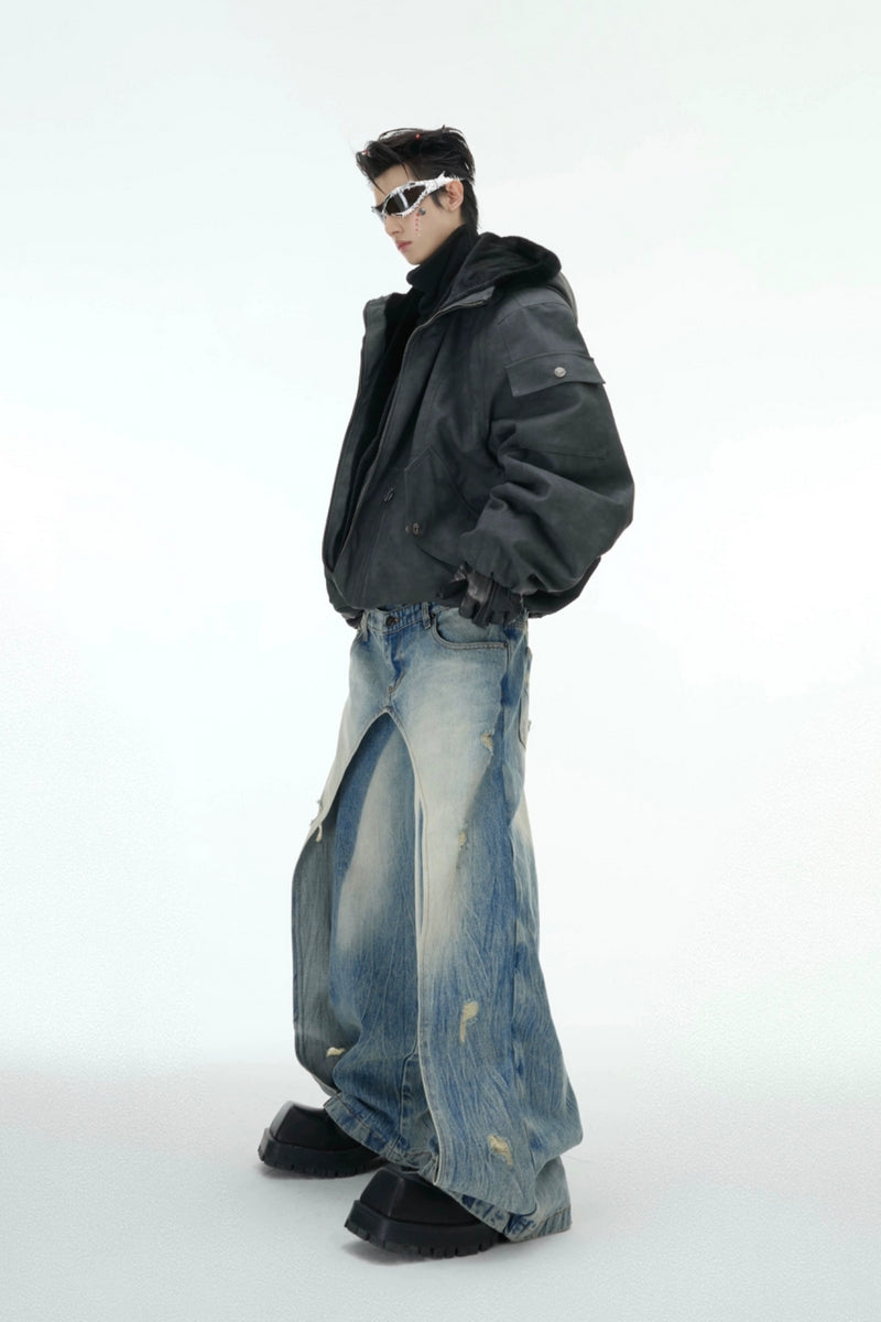 Reversible Distressed Hooded Jacket