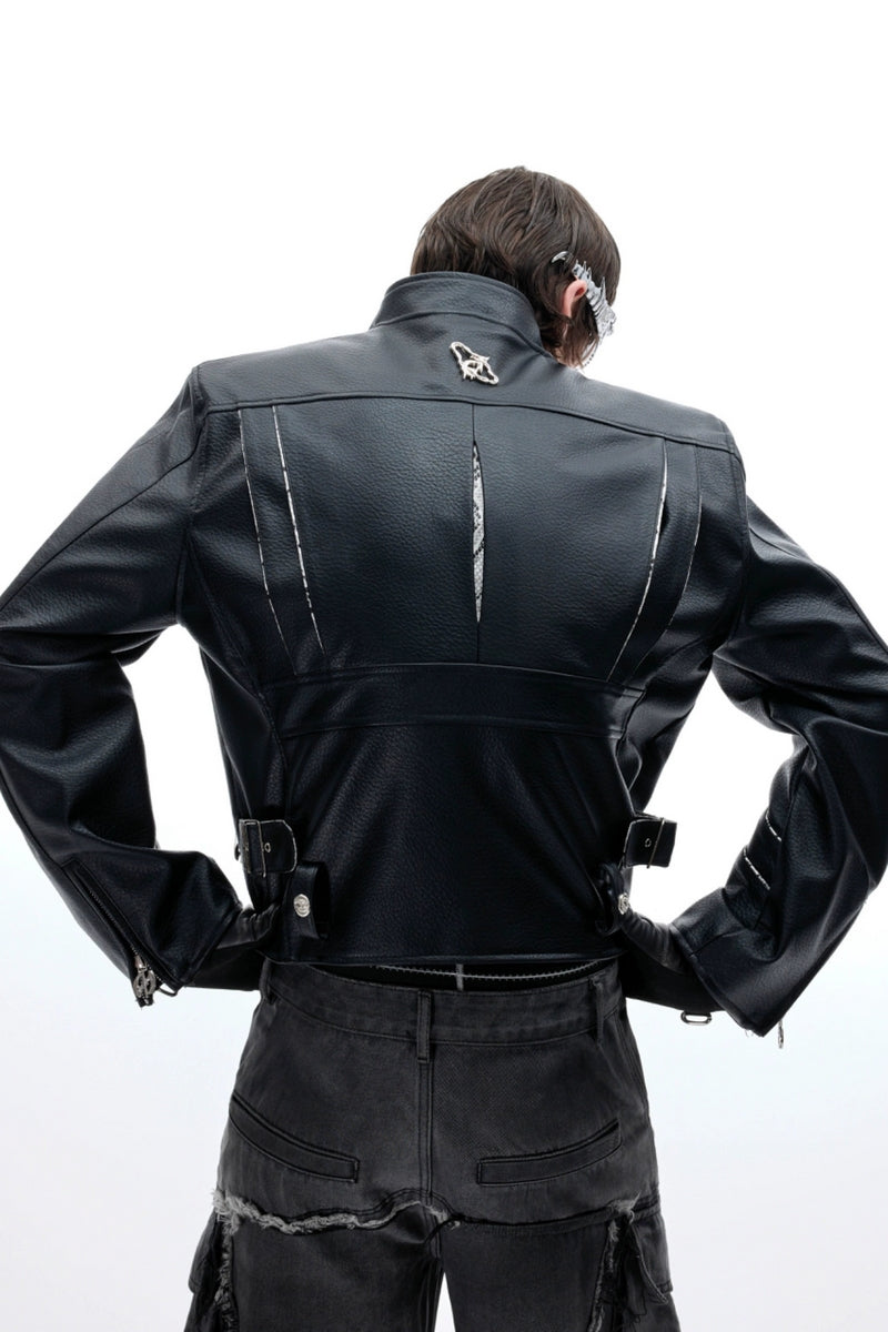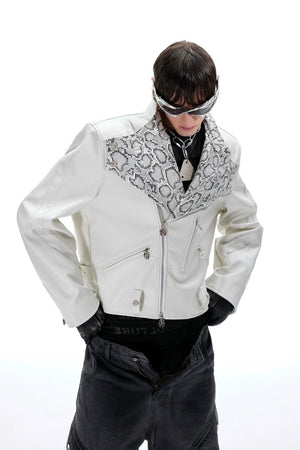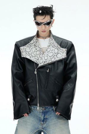 Snake Print PU Biker Jacket