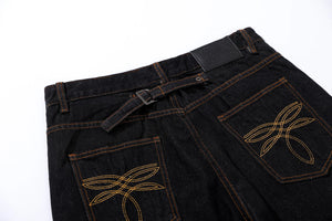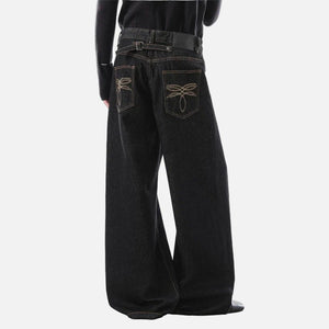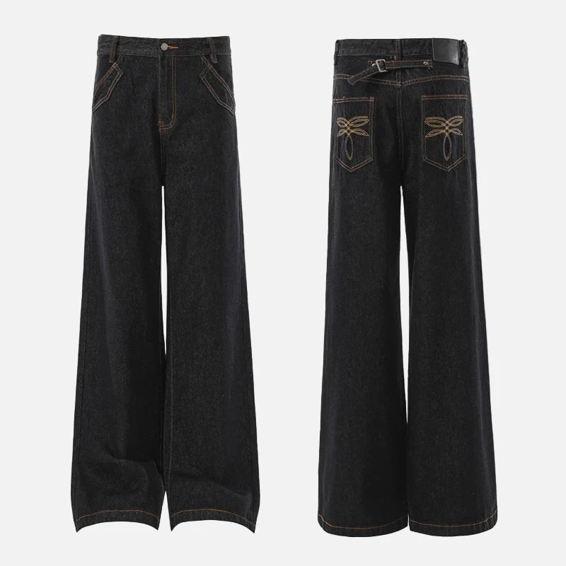 American Style Embroidery Flared Wide Leg Jeans