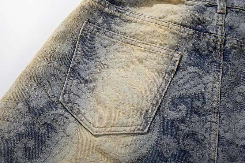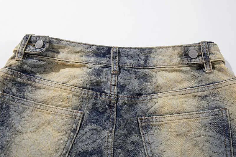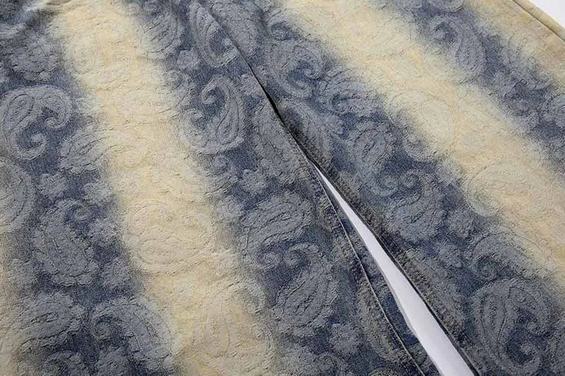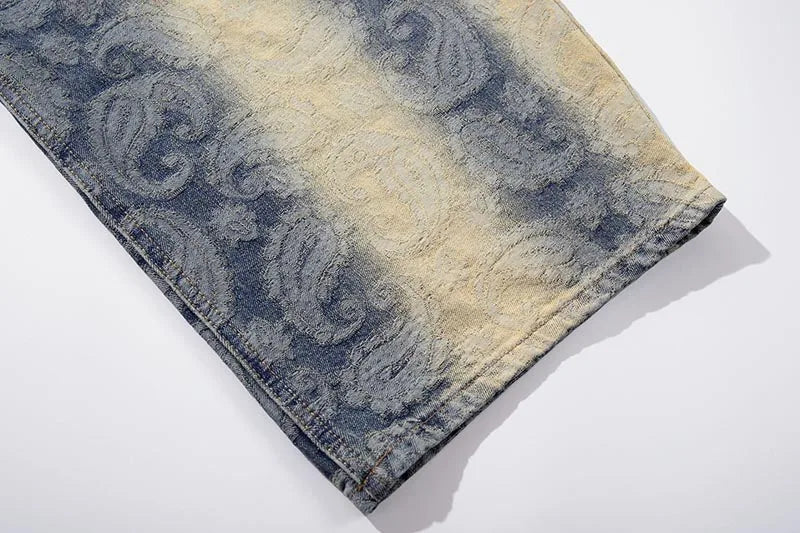 Bold Paisley Pattern Loose Fit Denim Jeans