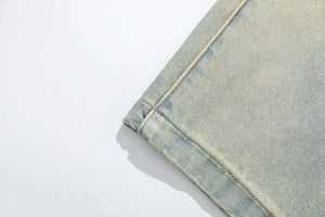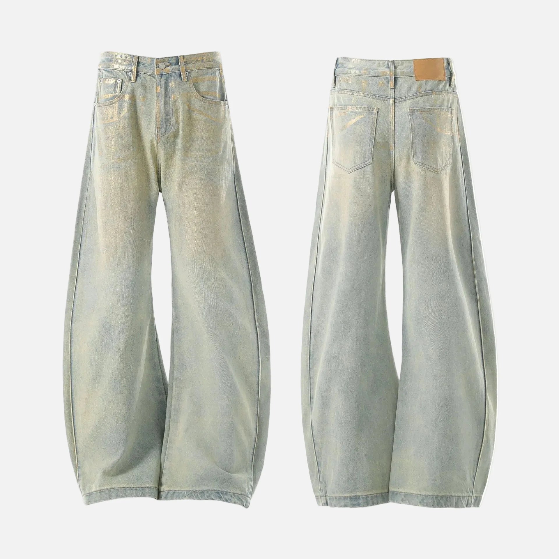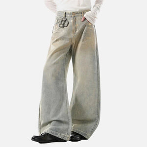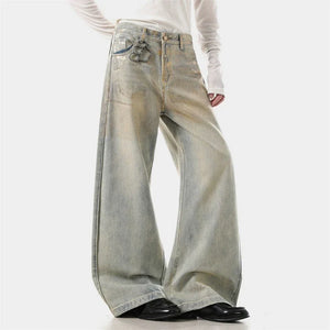 Chic Coated Printing Washed Wide Leg Jeans