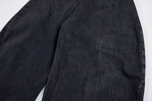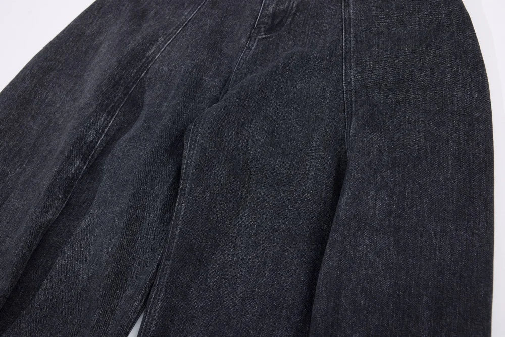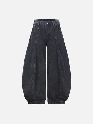 Distressed Pleated Wide Leg Banana Denim Jeans
