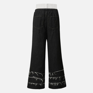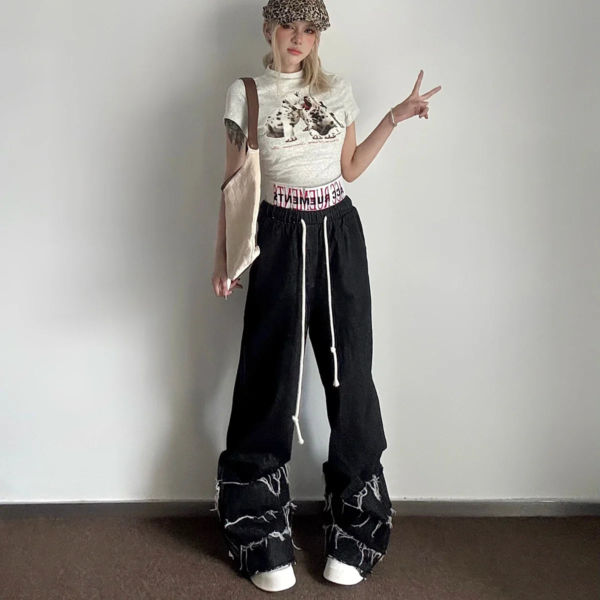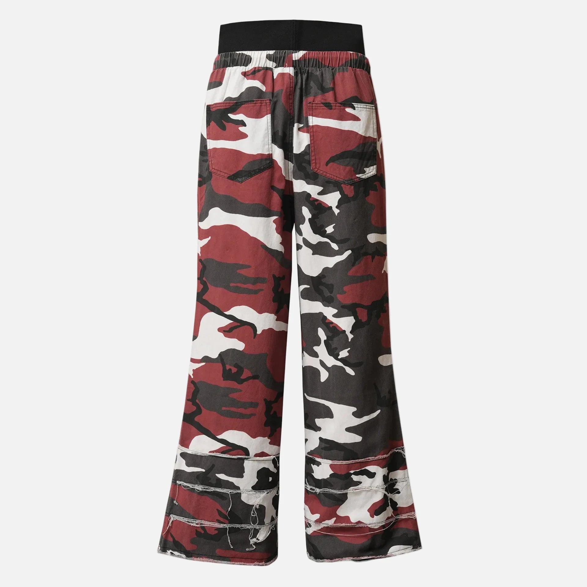 Elastic Waist Drawstring Camouflage Flare Jeans