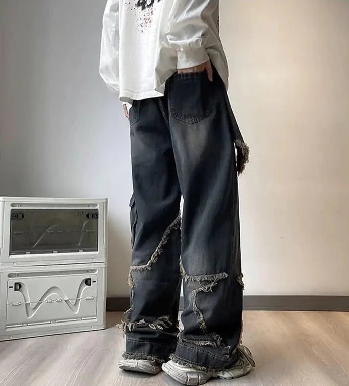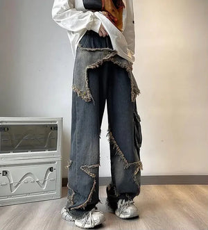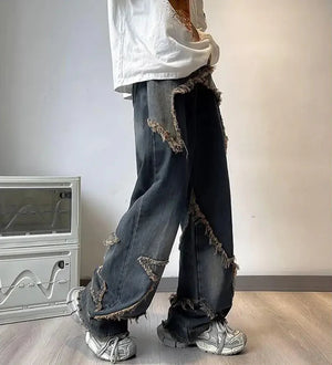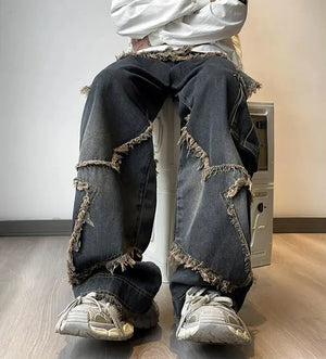 Fringe Distressed Vintage Style High-Waisted Jeans