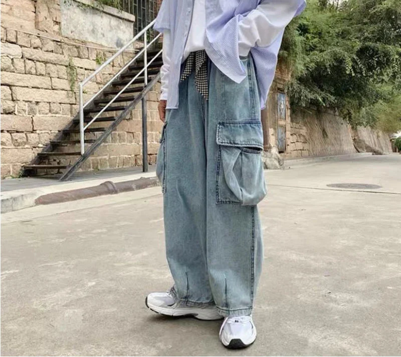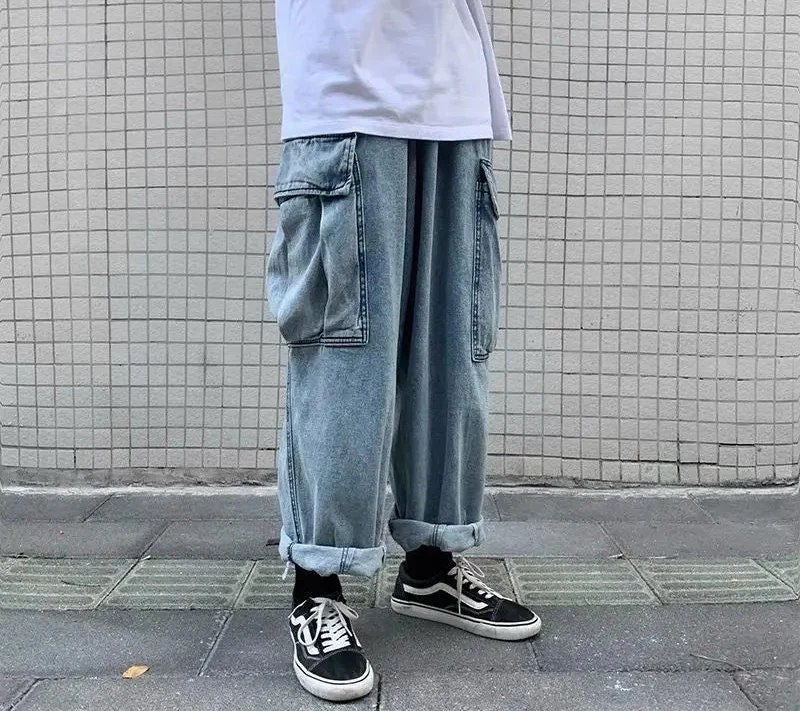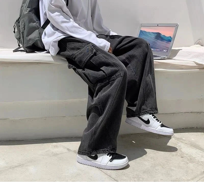 Handsome Retro Wide Leg Denim Cargo Jeans