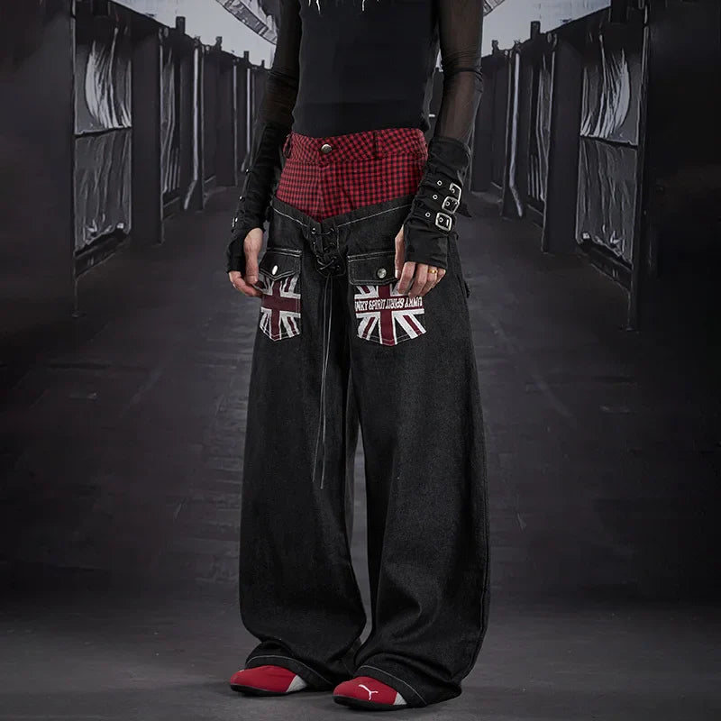 Marled New Double Layer Splicing Jeans