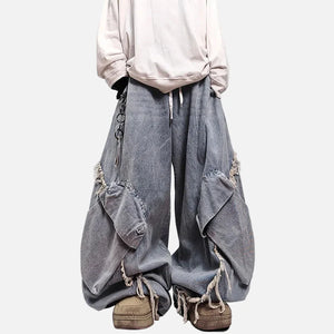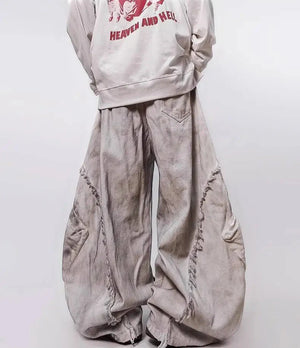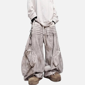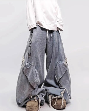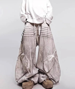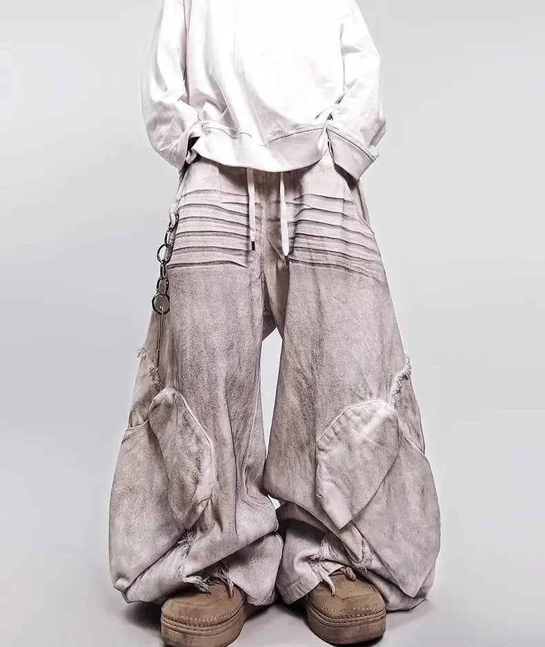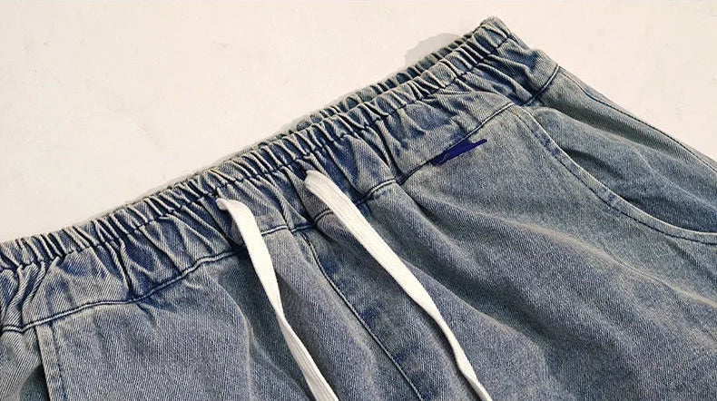 Minimalist Elastic Waist Pleated Wide Leg Jeans