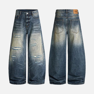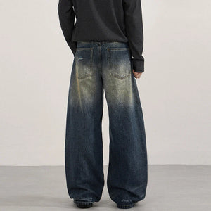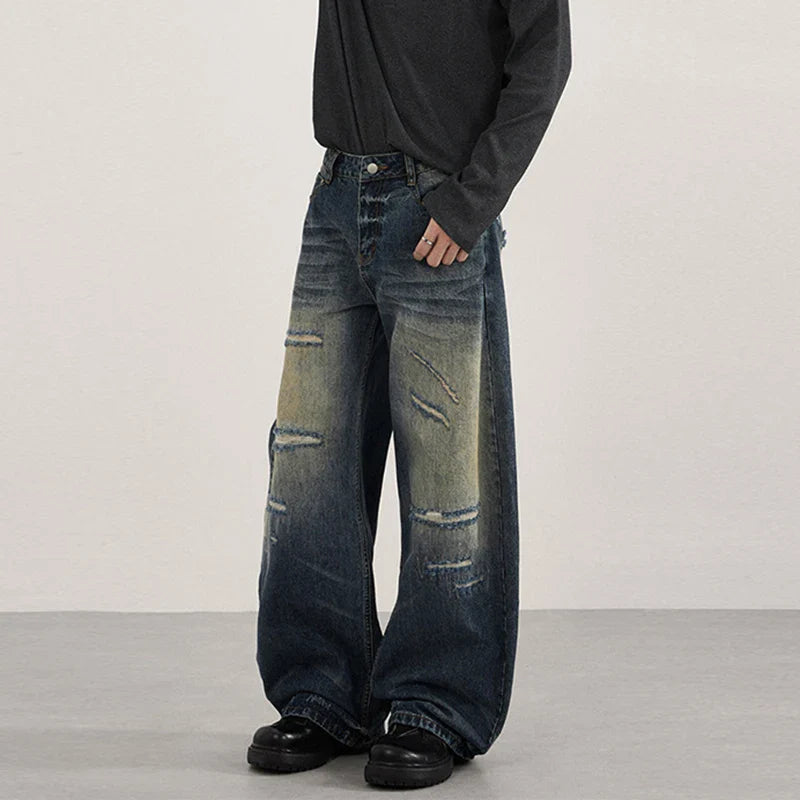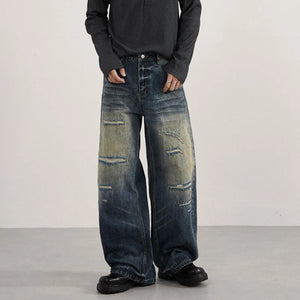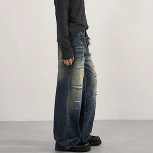 Patchwork Distressed Wide Leg Washing Denim Jeans