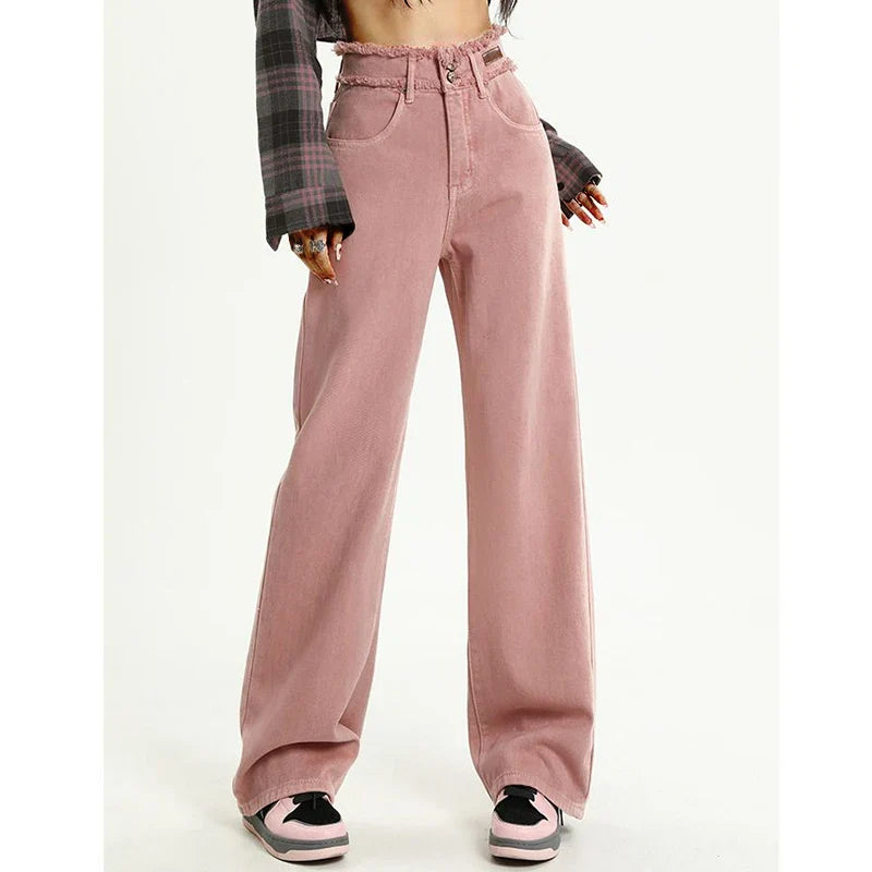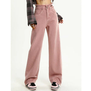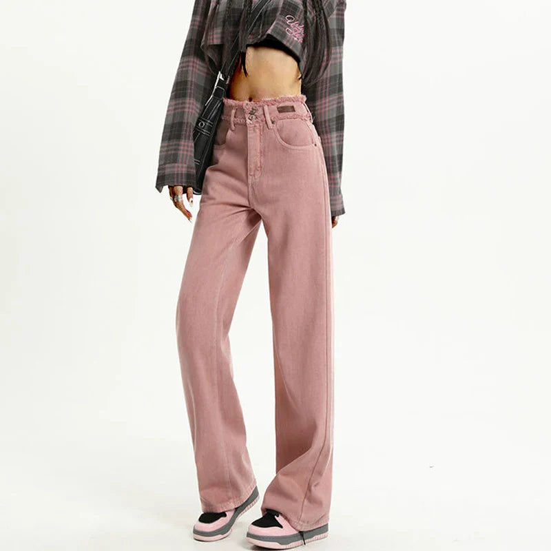 Pink Gothic Y2K Designer Straight Leg Jeans
