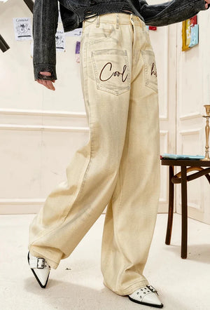 Plush High Waist Hip Hop Straight Leg Jeans